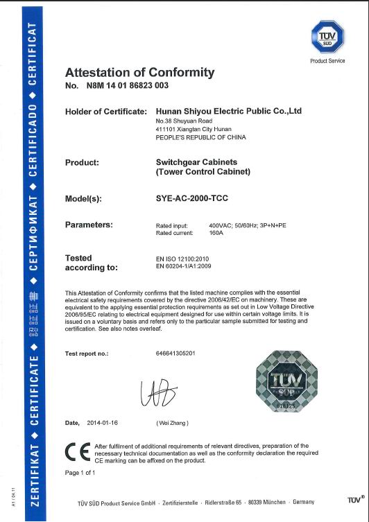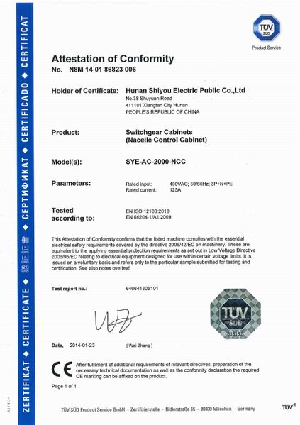 After rigorous evaluation by the world-renowned certification body TUV in Germany, the entire series of electric control systems for wind turbines from Shiyou Electric have been awarded the EU CE certification, marking a significant breakthrough for Shiyou Electric's products in entering the mainstream international market.