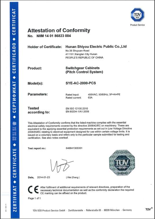 After rigorous evaluation by the world's authoritative certification body TUV in Germany, the entire series of products for the electric control system of Shiyou Electric's wind turbines have been awa