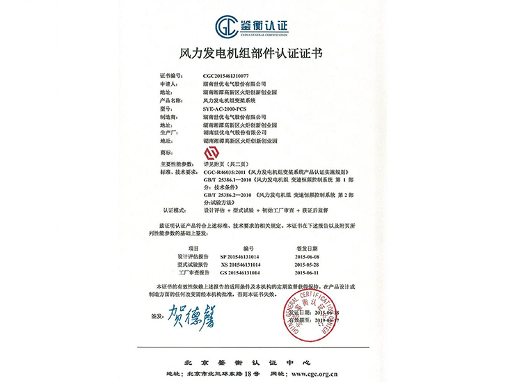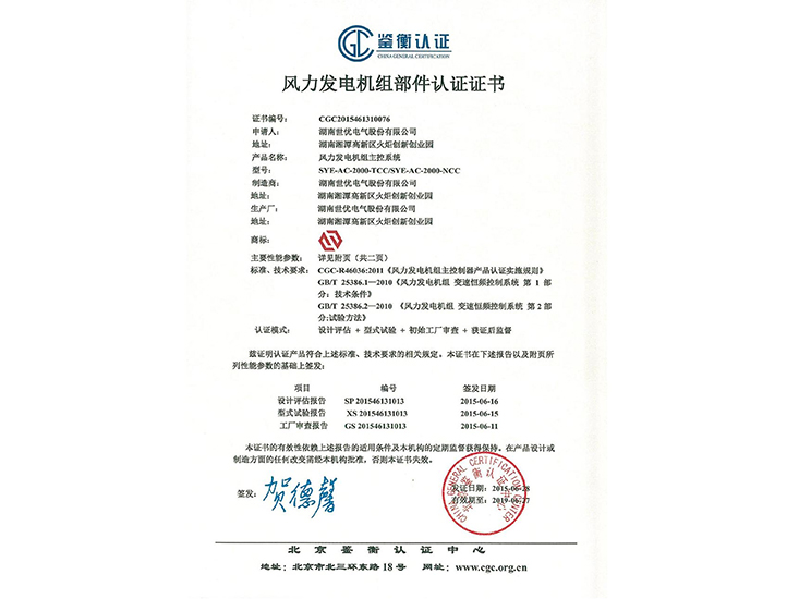 • 風力發(fā)電機組主控系統(tǒng)鑒衡認證