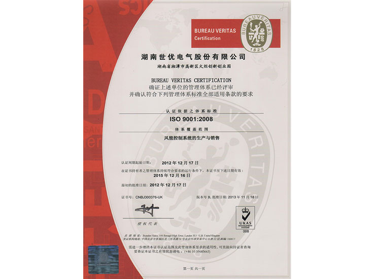 • ISO質(zhì)量管理體系認證證書